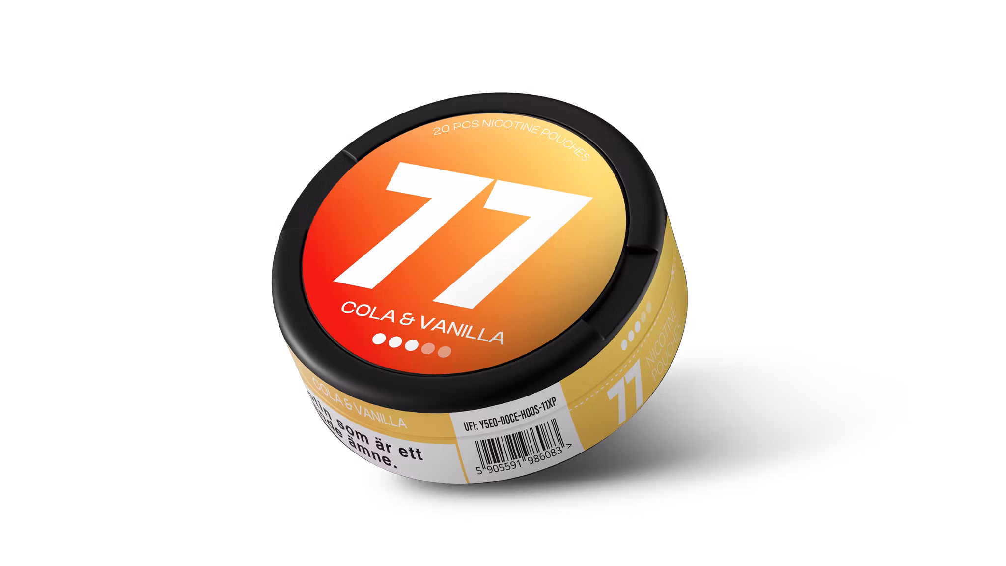 77 Cola Vanilla är ett vitt snus i smalt slim-format, med en smakprofil som kombinerar cola och mjuk vanilj. Varje dosa innehåller 20 prillor, och produkten har en nikotinhalt på 16 mg/g, vilket motsvarar 10,4 mg nikotin per prilla.